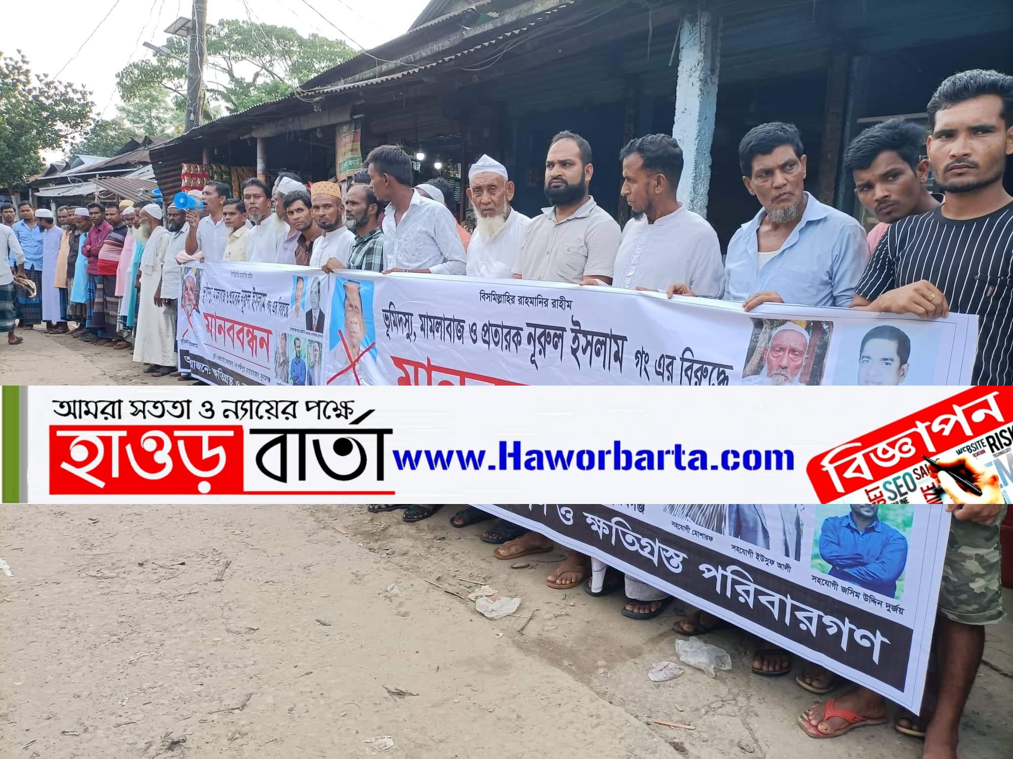 এসময় বক্তারা বলেন, চকবাজার এলাকায় ভূমিদস্যু নুরুল ইসলাম মিথ্যা মামলা দায়ের করে মানুষদের হয়রানি করছেন। বাজারের সকল ব্যবসায়ীদের ক্ষতি করার উদ্দেশ্যে মিথ্যা মামলা দিয়ে ক্ষতিগ্রস্ত করছেন। নুরুল ইসলাম এলাকায় ভূমিদস্যু ও মামলাবাজ হিসেবে পরিচিত। বিভিন্ন সময় প্রতারণা করে অনেকে জায়গা দখল করার চেষ্টা করেছেন। এই নুরুল ইসলামের হাত থেকে এলাকাবাসী কে রক্ষা করার আহ্বান জানান বক্তারা।