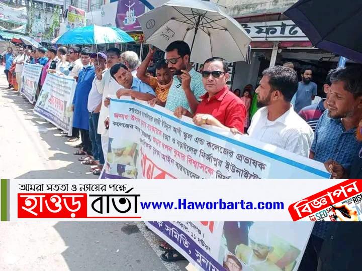 ইফতিয়াজ সুমন:::: ঢাকার আশুলিয়ায় হাজী ইউনুস আলী স্কুল এন্ড কলেজের প্রভাষক উৎপল কুমার সরকারকে পিটিয়ে হত্যা এবং নড়াইলের ইউনাইটেড ডিগ্রি কলেজের অধ্যক্ষ(ভারপ্রাপ্ত) স্বপন কুমার বিশ্বাসকে নির্যাতনকারীদের সর্বোচ্চ শাস্তির দাবীতে এবং শিক্ষক সুরক্ষা আইন বাস্তবায়নের দাবীতে সুনামগঞ্জে মানববন্ধন অনুষ্ঠিত হয়েছে।