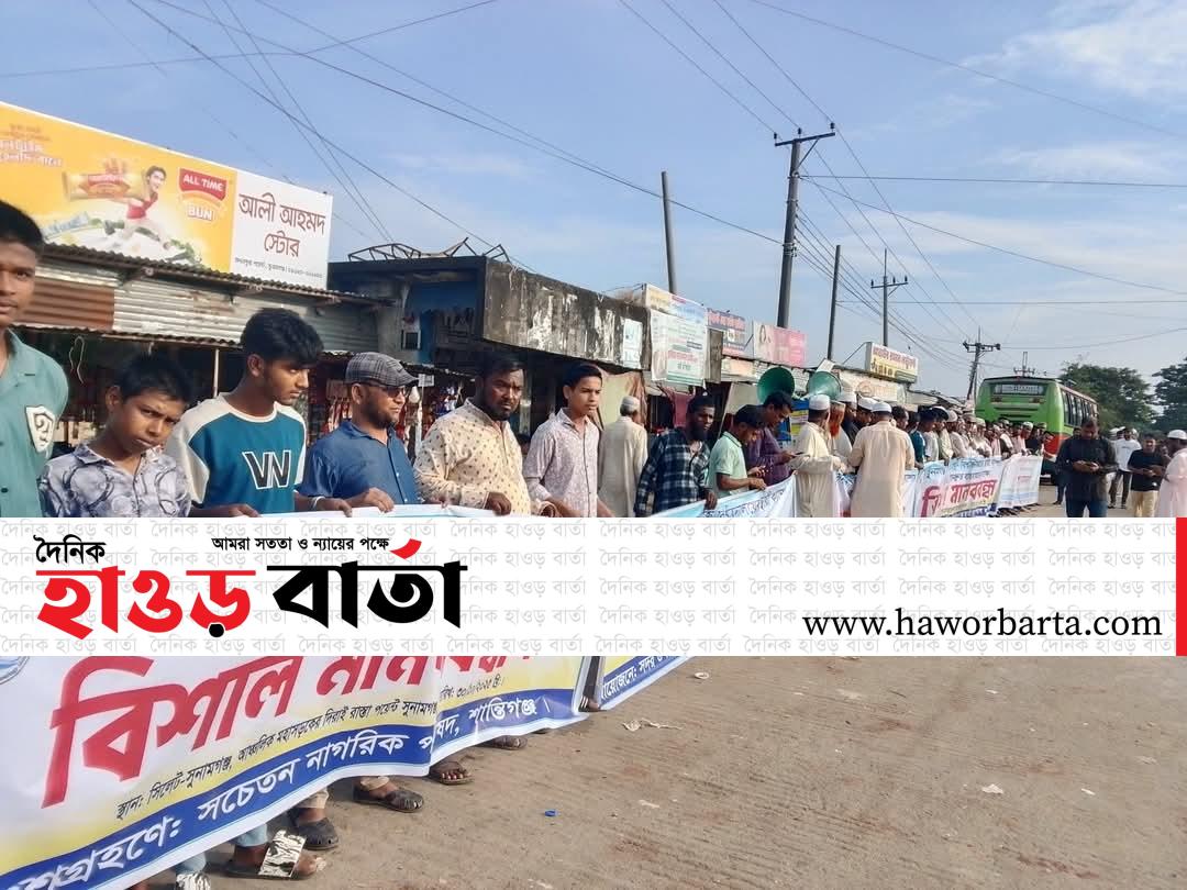 সুনামগঞ্জ বিজ্ঞান ও প্রযুক্তি বিশ্ববিদ্যালয়ের স্থায়ী ক্যাম্পাস বাস্তবায়নের দাবিতে বিশাল মানববন্ধন