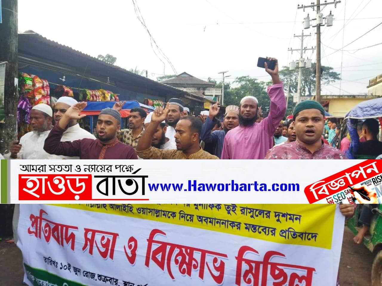 মহানবী (সা.) কে নিয়ে কটুক্তি প্রতিবাদে দোয়ারাবাজারে বিক্ষোভ মিছিল।