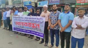 রবিবার (২০ই এপ্রিল) বিকাল ৪ ঘটিকার সময় শহরের আলফাত উদ্দিন স্কয়ার ট্রাফিক পয়েন্টে এ মানববন্ধন অনুষ্ঠিত হয়।