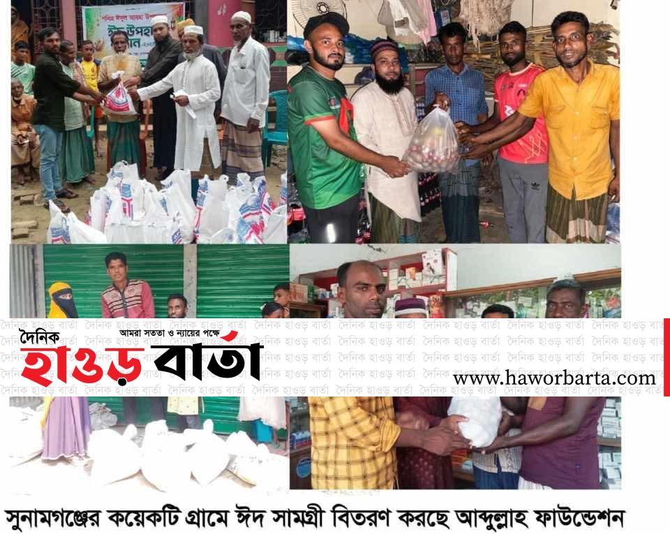 শান্তিগঞ্জ প্রতিনিধি : সুনামগঞ্জ জেলার কয়েকটি গ্রামে ঈদুল আজহা উপলক্ষে দরিদ্র পরিবারের মাজে ঈদ উপহার প্রদান করেছে সামাজিক সংগঠন আব্দুল্লাহ ফাউন্ডেশন। ৪ ও ৫ জুন দুই দিনে তেল পেয়াজ মশলা সহ নিত্য প্রয়োজনীয় খাবার সামগ্রী দেয়া হয়েছে।