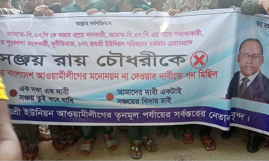 ধর্মপাশায় ইউপি চেয়ারম্যান মনোনয়ন না দেওয়ার দাবিতে গণমিছিল