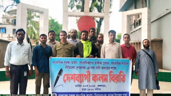 মোঃ তাজিদুল ইসলাম:: স্বাধীনতার ৫৪বছরেও সাংবাদিকদের পেশাগত অধিকার প্রতিষ্ঠিত হয়নি ১৪ দফা দাবিতে ছাতকে সাংবাদিকদের কলমবিরতি। স্বাধীনতার ৫৪ বছরেও সাংবাদিকদের পেশাগত অধিকার প্রতিষ্ঠিত হয়নি। অধিকার আদায়ে ১৪ দফা দাবিতে কলম