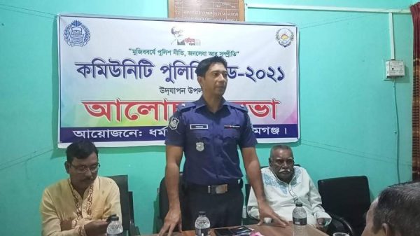 ধর্মপাশা (সুনামগঞ্জ) প্রতিনিধিঃ মুজিববর্ষে পুলিশ নীতি’ জনসেবা আর সম্প্রীতি এই প্রতিপাদ্যকে সমানে রেখে সুনামগঞ্জের ধর্মপাশায় কমিউনিটি পুলিশিং ডে উপলক্ষে আলোচনা সভা অনুষ্ঠিত হয়েছে। শনিবার সকাল ১১টায় ধর্মপাশা থানা পুলিশের উদ্যোগে