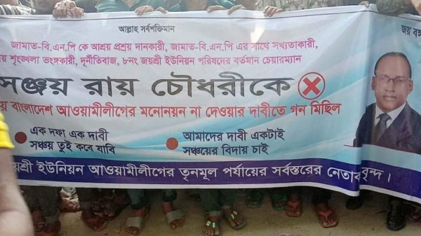 মহি উদ্দিন আরিফ ধর্মপাশা প্রতিনিধিঃ সুনামগঞ্জের ধর্মপাশা উপজেলার জয়শ্রী ইউনিয়ন পরিষদ চেয়ারম্যান সঞ্জয় রায় চৌধুরীকে জামাত-বিএনপিকে আশ্রয়দান ও তাদের সাথে সখ্যতাকারী, দলীয় শৃঙ্খলা ভঙ্গকারী এবং দুর্নীতিবাজ আখ্যায়িত করে তাকে আওয়ামী
