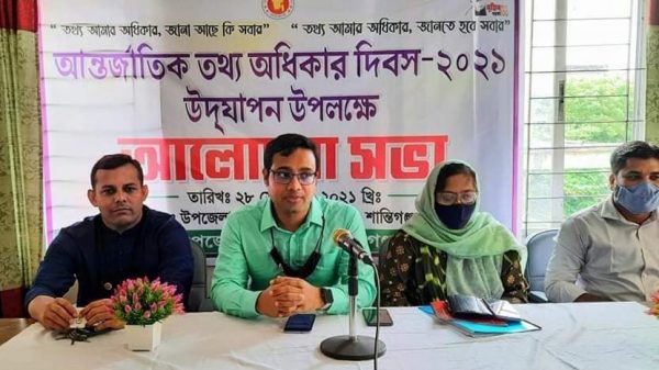 নিজেস্ব প্রতিবেদনঃ “তথ্য আমার অধিকার, জানা আছে কি সবার” “তথ্য আমার অধিকার, জানতে হবে সবার” এই প্রতিপাদ্যকে সামনে রেখে সুনামগঞ্জের শান্তিগঞ্জে উপজেলা আন্তর্জাতিক তথ্য অধিকার দিবস -২০২১ উদযাপন উপলক্ষে আলোচনা
