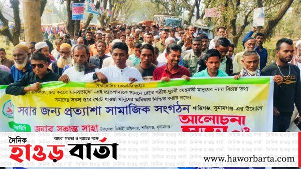 শান্তিগঞ্জ (সুনামগঞ্জ) প্রতিনিধি:: ‘চলবো মোরা একসাথে, জয় করবো মানবতাকে’ এই প্রতিপাদ্যকে সামনে গরীব দু:খী মেহনতী মানুষের ন্যায় বিচার তথা সমাজের সকল স্তরে খেটে খাওয়া মানুষের অধিকার নিশ্চিত করার লক্ষে সুনামগঞ্জের