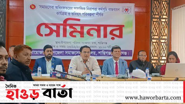 মো: নুরুল হক শান্তিগঞ্জ : সুনামগঞ্জের শান্তিগঞ্জে ‘সমাজসেবা অধিদপ্তরের সামাজিক নিরাপত্তা কর্মসূচি বাস্তবায়ন কার্যক্রম ও ভবিষ্যৎ পরিকল্পনা’ শীর্ষক সেমিনার অনুষ্ঠিত হয়েছে। সোমবার( ২৩ ডিসেম্বর) সকাল ১১ টায় উপজেলা সমাজসেবা কার্যালয়ের