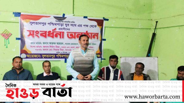 শান্তিগঞ্জ প্রতিনিধি:: সুনামগঞ্জের শান্তিগঞ্জ উপজেলার জয়কলস ইউনিয়নের সুলতানপুর পশ্চিমপাড়া যুব সংঘের উদ্যোগে প্রবাসীদের সংবর্ধনা দেয়া হয়েছে। মঙ্গলবার(১৭ ডিসেম্বর) সন্ধ্যায় সুলতানপুর সরকারি প্রাথমিক বিদ্যালয়ে অনুষ্ঠিত এই সংবর্ধনা অনুষ্ঠানে প্রধান অতিথির বক্তব্য