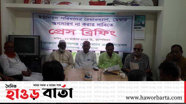 সুনামগঞ্জ জেলা প্রতিনিধি: ইউনিয়ন পরিষদের চেয়ারম্যান ও মেম্বারদের অপসারণ না করার দাবিতে সুনামগঞ্জে সংবাদ সম্মেলন অনুষ্ঠিত হয়েছে। বৃহস্পতিবার (১৭ অক্টোবর) দুপুরে পৌর শহরের কাজির পয়েন্টে এক সংবাদ সম্মেলনে এ দাবি
