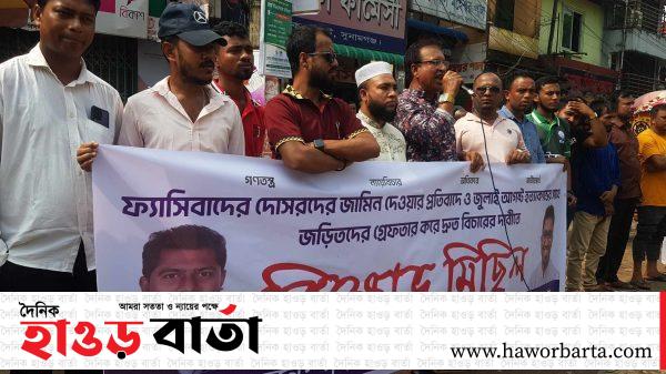 একে মিলন সুনামগঞ্জ থেকে : ফ্যাসিবাদ দোসরদের জামিন দেওয়ার প্রতিবাদে ও জুলাই আগষ্ট হত্যাকান্ডের সাথে জড়িতদের গ্রেফতার করে দ্রুত বিচারের দাবিতে বিক্ষোভ মিছিল ও সমাবেশ করেছে গণঅধিকার পরিষদ সুনামগঞ্জ জেলা