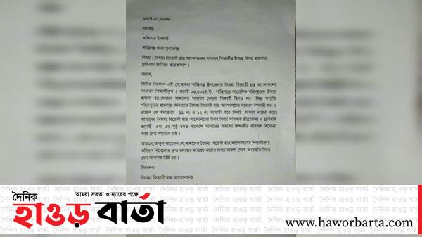 শান্তিগঞ্জ প্রতিনিধি : বৈষম্য বিরোধী ছাত্র আন্দোলনের সাধারণ শিক্ষার্থীর উপর ষড়যন্ত্রমূলক মিথ্যা মামলায় আসামী করার প্রতিবাদে শান্তিগঞ্জ থানার ভারপ্রাপ্ত কর্মকর্তা ও শান্তিগঞ্জ উপজেলা নির্বাহী অফিসার বরাবর ছাত্রদেরকে মিথ্যা মামলা থেকে