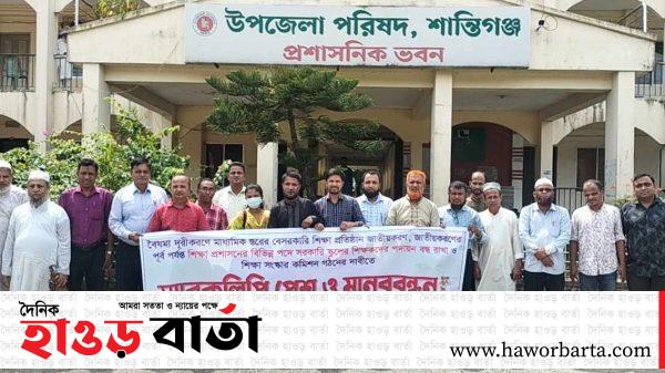 শান্তিগঞ্জ(সুনামগঞ্জ) প্রতিনিধি:: বৈষম্য দূরীকরণের মাধ্যমিক স্তরের বেসরকারি শিক্ষাপ্রতিষ্ঠান জাতীয়করণ, জাতীয়করণ পূর্ব পর্যন্ত শিক্ষা প্রশাসনের বিভিন্ন পদে সরকারি স্কুলের শিক্ষকদের পদায়ন বন্ধ রাখা ও শিক্ষা সংস্কার কমিশন গঠনের দাবীতে সারাদেশের ন্যায়