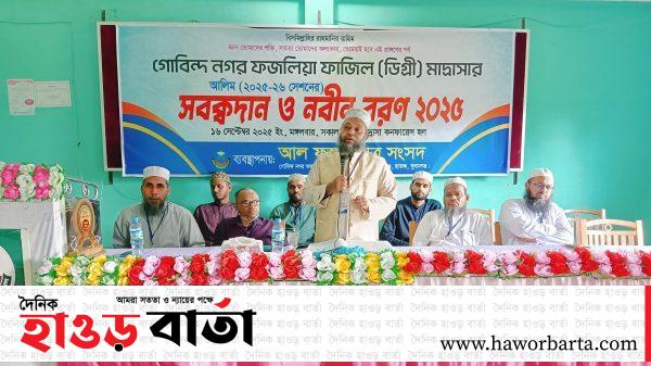 শহিদুল ইসলাম রেদুয়ান : পশ্চিম সিলেটের প্রাচীন দ্বীনি দরসগাহ ঐতিহ্যবাহী গোবিন্দনগর ফজলিয়া ফাজিল (ডিগ্রি) মাদ্রাসায় আলিম প্রথম বর্ষের নবীনবরণ ও সবকদান অনুষ্ঠান সম্পন্ন হয়েছে। মঙ্গলবার (১৬ সেপ্টেম্বর) সকাল ১১টায় মাদ্রাসা