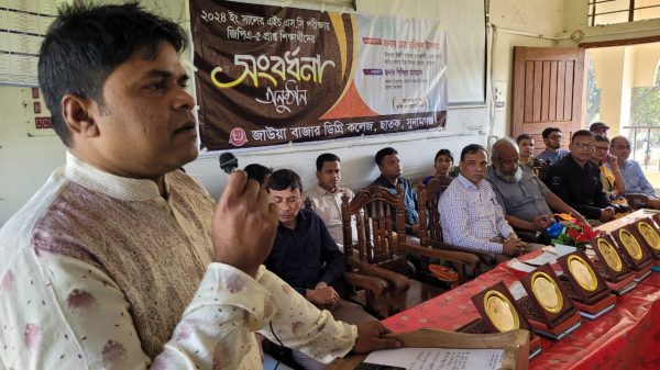 নিজেস্ব প্রতিবেদক : সুনামগঞ্জের ঐতিহ্যবাহী জাউয়াবাজার ডিগ্রি কলেজ কর্তৃক জিপিএ- ৫ প্রাপ্ত ১০ শিক্ষার্থী কে সংবর্ধনা প্রদান করা হয়েছে। বৃহস্পতিবার (২৭ই ফেব্রুয়ারি) দুপুরে ক্যাম্পাস অডিটোরিয়ামে কলেজের ভারপ্রাপ্ত অধ্যক্ষ শিব্বির আহমদের