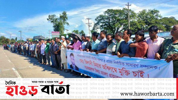শান্তিগঞ্জ(সুনামগঞ্জ) প্রতিনিধি:: সুনামগঞ্জের শান্তিগঞ্জ বাজার ব্যবসায়ী কমিটির ৩ বারের সাধারণ সম্পাদক জিলানী মিয়ার অবিলম্বে মুক্তি ও ষড়যন্ত্রমূলক মিথ্যা মামলার প্রত্যাহার চেয়ে মানববন্ধন করেছেন শান্তিগঞ্জ বাজার ব্যবসায়ী কমিটির নেতৃবৃন্দ। রবিবার(২৫ আগস্ট)